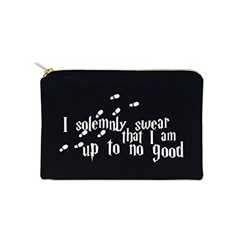 I Solemnly Swear 12 oz Cosmetic Makeup Cotton Canvas Bag - (Black Canvas)