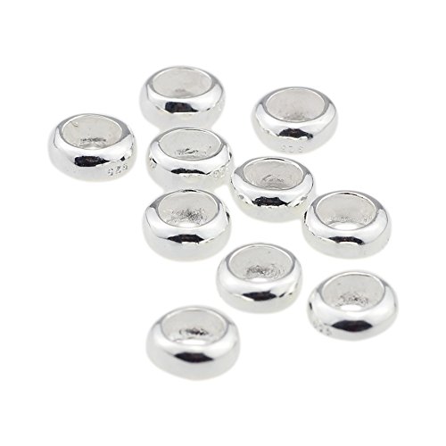 Clip Stopper Charms Sterling Silver Rondelle Spacer Bead for European 2.5-3.5mm Cable Chain for Bracelets (2 PCS) (A, Silver)