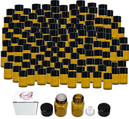 144 Pack Beauticom USA 5/8 Dram/2ML Amber Glass Vial for Massage Oils, Fragrances, Serums, Mixes and Other Liquids with Orifice Reducer and...