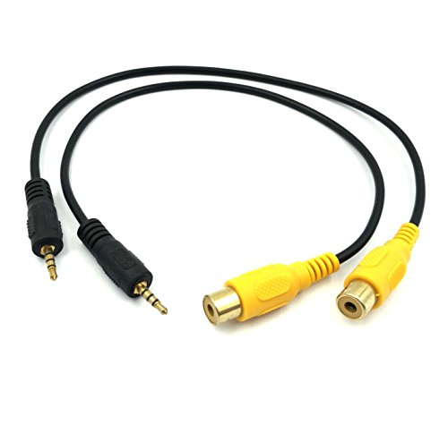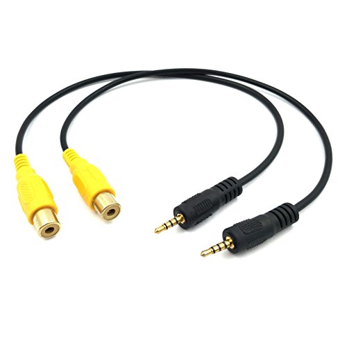 Exuun (2-Pack) 2.5mm to RCA Cable, 30CM Golden Plated 2.5mm TRRS Male to RCA Female Cable RCA to AUX 2.5mm AV IN Adapter Cable for Car Rear View Parking Camera TO GPS Tablet Phone
