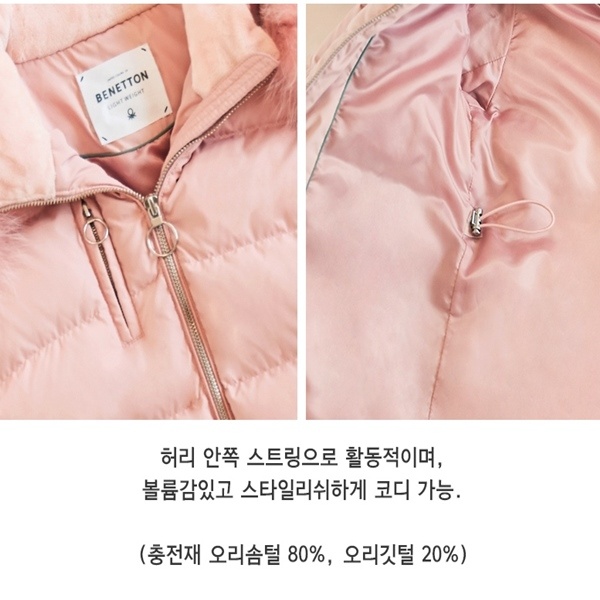 제품소재 : 겉감:폴리에스터 100%배색:폴리에스터 100%안감:폴리에스터 100%충전재:오리솜털80%오리깃털20%리얼FUR:여우털인조FUR:아크릴79%폴리에스터 16%아크릴계5%