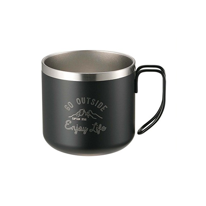 캡틴 스태그(CAPTAIN STAG) 머그컵 컵 더블 스테인레스 진공 단열 보온 보냉 350ml 블랙 몽데 UE-3429