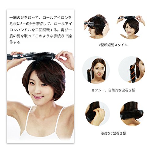AQQEF 헤어아이론(고데기) 접는식 카루 아이론(고데기) 휴대식 브러시 아이론(고데기) AT08 여행 해외 대응【블랙】