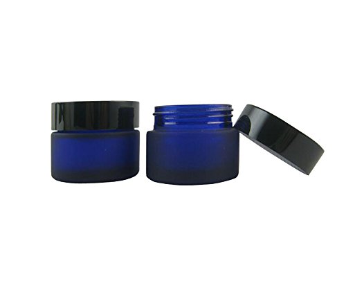 Package:2pcs 30ml blue glass face cream storage container cases with black cap