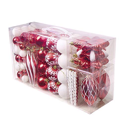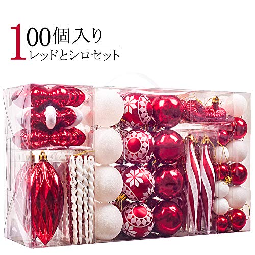 目新しい レッドとシロを基調としたたっぷりのオーナメントセットはイルミネーションと一緒に飾れば、キラキラと美しく反射して、幻想的なムード満点。 | サイズ100個セット・17種類大集合!!お買い得!これ一つでツリーの飾り付けができるお手軽で豪華なオーナメントセットです。 | ただ一つの単品でツリーを360度全面的に飾りたいお客様におすすめです。 |