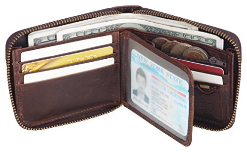 -. Title : Men's Genuine Leather Bifold Wallet Zip-Around Card Holder Money Clip-Gift Wrapped