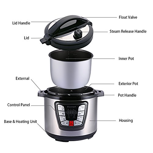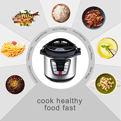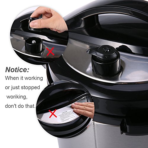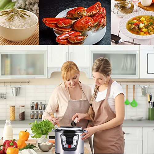 【Healthy, Safe & Durable】 No matter you are a beginner or a professional, the pressure cooker allows you to make healthy and tasty food in few minutes with 100% safety guaranteed. The premium-quality 6Qt 1000W stainless-steel pressure cooker is CE/ROHS/EMC certificated, ensuring that it is safe to use with long-lasting life span.