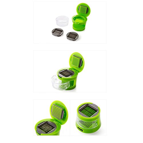 Hang Rui 채 썲기 HangRui 마늘 찌그러뜨림(으깸)기 수동 마늘옥 파 생강 실용 편리 사용하기 쉽 콤팩트성 7.5*7.5*6cm (그린+그레이)