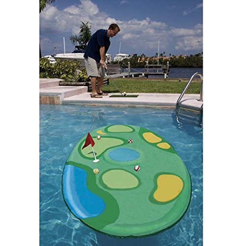 The SwimWays Pro-Chip Spring Golf game is a hole-in-one for the golf enthusiast! Float the practice green in the pool and hit the balls from poolside. The floating green opens and closes easily thanks to the Patented Inner Spring, and all the game pieces fit into the convenient carry/storage bag. The Pro-Chip Spring Golf set comes with: One 66" x 40" Floating Green, 12 Practice Balls, one Chipping Mat, one moveable 18th hold flag, and one carry/storage tote. You supply your favorite golf club. Makes a great Father's Day gift or a fun gift for any golf lover! Sold individually.Feature