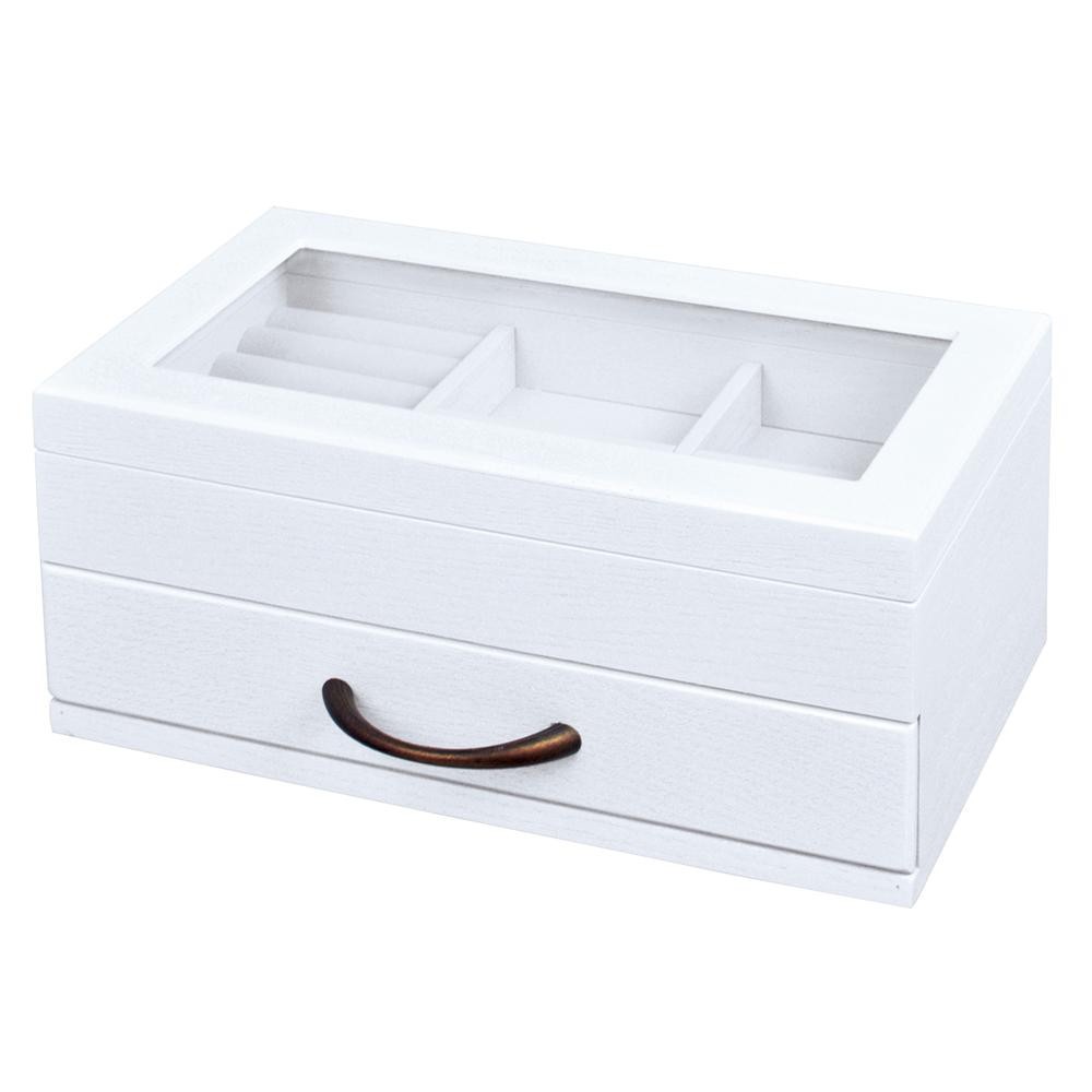 | アクセサリーの整理整頓に便利な引き出し付きのジュエルボックスです。リングさしのクッションにはピアスも刺すことができます。 |