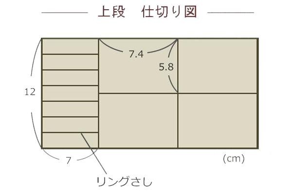 | 仕様 | 【各サイズ】 リングさし:W7×D12cm 上段(リングさし除く)W7.4×D5.8cm(4個) 下段(引出し)W21.5×D11×H3.7cm |