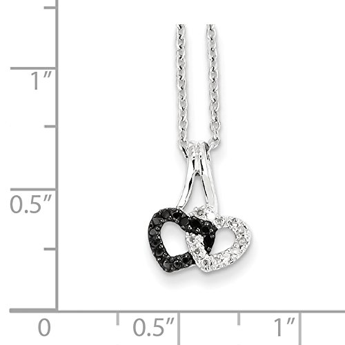 ICECARATS DESIGNER JEWELRY 925 STERLING SILVER BLACK WHITE DIAMOND DOUBLE HEART PENDANT CHARM NECKLACE