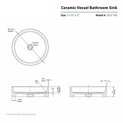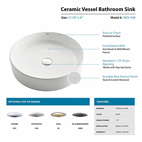 Kraus KCV-140 White Round Ceramic Bathroom Sink