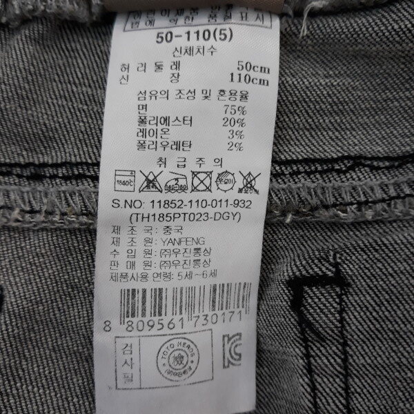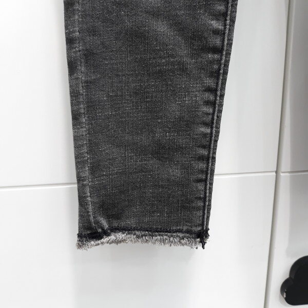 밑단 울풀림 장식이 트렌디함.남녀공용 스키니핏 블랙데님