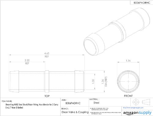 Dixon King KM82 Steel Shank/Water Fitting, Hose Mender for 2 Clamp End, 1" Hose ID Barbed