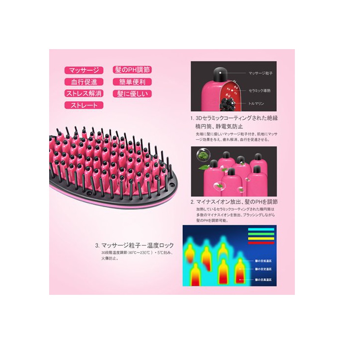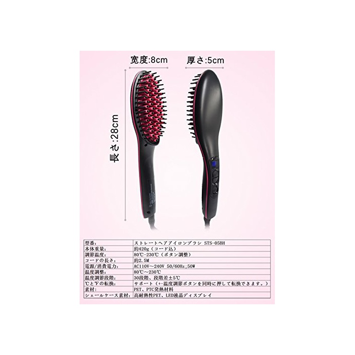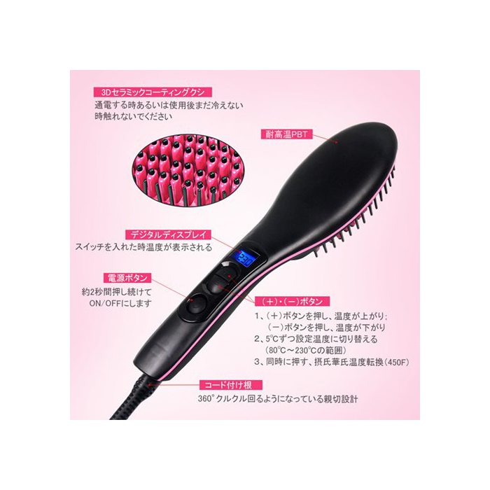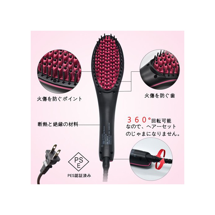 원본상품명: ブラシアイロン ヘアアイロン ストレトブラシ 度調節可能 火傷防止 PSE認み 納ポチ付き