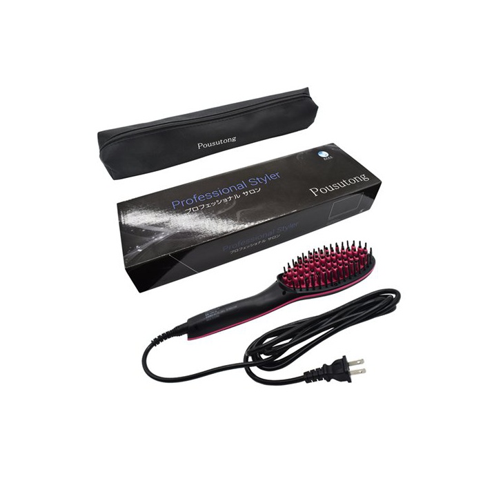 Pousutong 브러시 아이런 헤어아이런(고데기) 스트레이트 브러시 온도 조절 가능 화상처 방지 PSE인증필 수납 파우치 부착