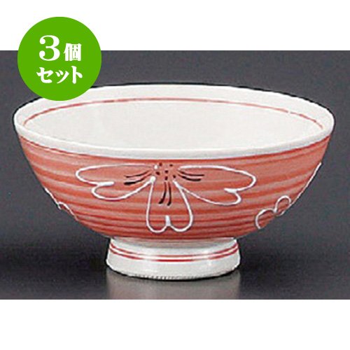 원본상품명: 3個セット 飯碗(磁器) 赤?一珍大花中平茶碗 [118 x 58mm] 和食器 料亭 旅館 ?食店 業務用