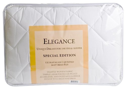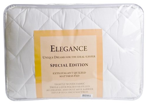 -. Binding : Kitchen -. Brand : Bradford Textile Co -. Color : White -. Feature : 39 By 75 / Tightly woven fabric quilted pad / Allergenic and dust mite barrier / Triple layer polyester filled / Made in USA -. Label : Bradford Textile Company -. Manufacturer : Bradford Textile Company -. Model : TELEGANCE-PARENT -. ProductGroup : Home -. ProductTypeName : HOME -. Publisher : Bradford Textile Company -. Size : Full -. Studio : Bradford Textile Company -. Title : Bradford Textile USA Made Elegance Quilted Triple Layer Polyester Filled Mattress Pad with Skirt to Fit Mattresses Up to 21-Inch