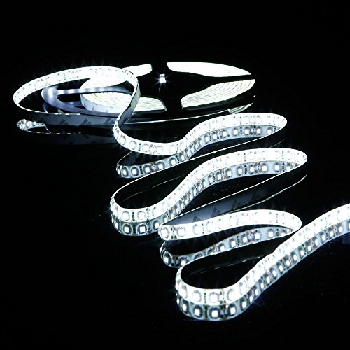 Bright enough to light a whole room if run round all four walls - working brilliantly in the conservatory which has always been too dim! Cool white light similar to fluorescent. High quality adhesive (3M) and easy to join and connect. The waterproof silicon encapsulation is gin-clear and actually improves the overall look compared to plain SMD led tape.