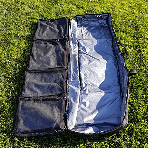 -. Feature : One X-Large, rolling, portable 24x8 soccer goal carry bag, heavy duty, high quality, pull or carry / Durable and long lasting 1680D Nylon Oxford PVC water repelling lage fabric material outer & PVC water proof material inner, ¼" all side padding, designed for strength and easy cleaning / Four large double zippered mesh storage compartments for jerseys, gloves, nets, etc. / Two heavy duty support straps with easy clip cinch locks, three heavy duty rolling wheels, skid plates and three 12" long curb/stair skid bars / Bag Dimensions: 68" x 19" x 7" size designed to easily accommodate portable soccer goals up to 24' x 8' x 2' x 5' and 120 lbs