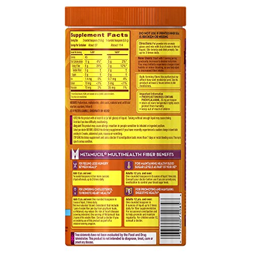 Metamucil Psyllium Fiber Supplement by Meta Orange Smooth Sugar Free Powder 23.3 oz 114 doses