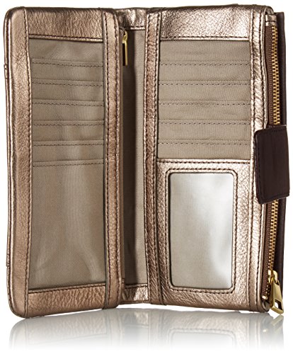 Interior details: 1 id window, 1 zipper pocket, 2 bill compartments, 11 credit card slots