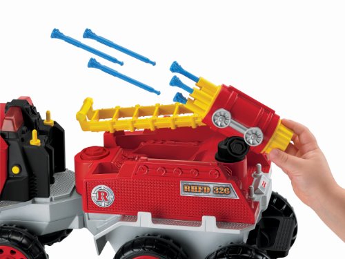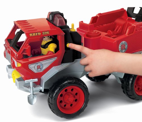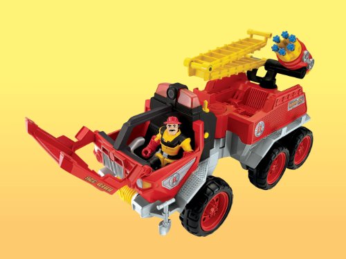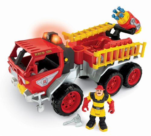-. Feature : The Hero World Rescue Heroes Fire Truck comes packed with fun features / Press the button for lights and fire engine sound / Turn the 'actionator' to launch six 'water' projectiles / Remove the ladders from the truck, snap them together and extend / Includes: Fire Truck, two ladders, a water blob launcher and six projectiles, suspension, and a Billy Blazes action figure