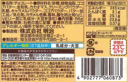 原材料:砂糖、植物油脂、ココアバター、全粉乳、カカオマス、クリーミングパウダー、乳糖、キャラメルパウダー、ココアパウダー、バター加工品、乳化剤、カラメル色素、香料、酸化防止剤(V.C、V.E)、(一部に乳成分・大豆を含む)