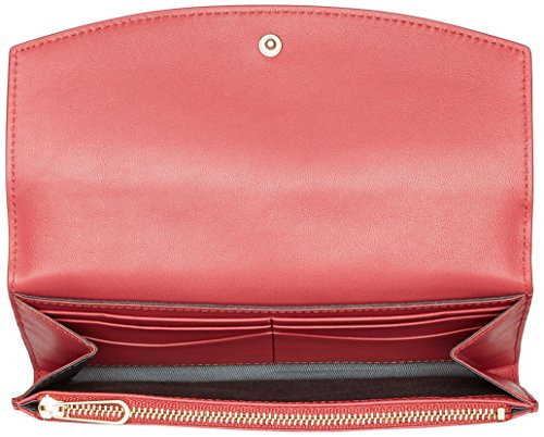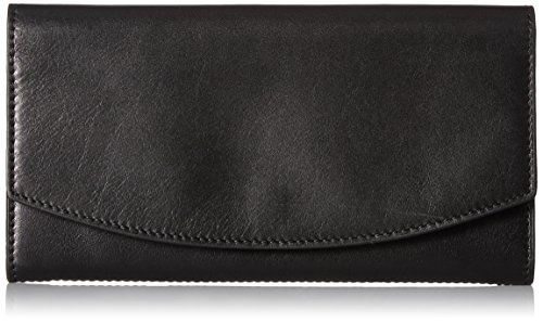 The snap-button flap of the continental flap wallet opens to reveal 12 credit card slots, a zip pocket and a bill slot, while the exterior features a slip pocket large enough for a smartphone.