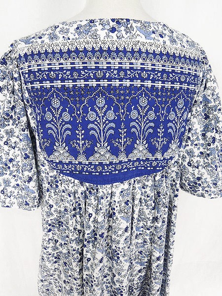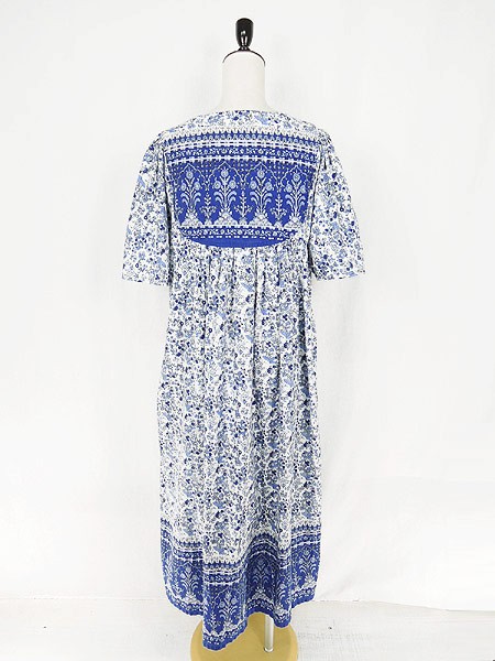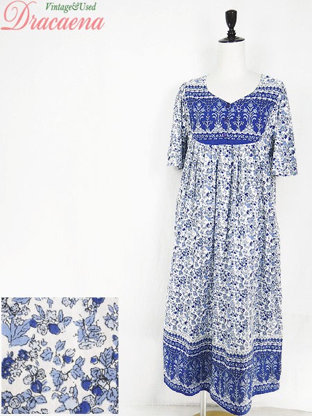Ladies ブランド- カラー白・青・水色 メール便不可 コンディション★★★ 素材コットン 表記サイズS スタッフコメントタグ、タグ下裏地に記名があります(着用には問題ありません)。前裾、真ん中付近に赤い色移りのようなヨゴレあり。 実寸サイズ 着丈 116 cm 身幅 47 cm 肩幅 35 cm 袖丈 30 cm ※ウエスト・ヒップ以外は平置き採寸