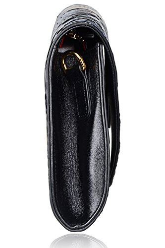 -. Brand : PIJUSHI -. Color : green -. Department : womens -. Feature : 100% Genuine leather with embossed crocodile,fabric lining; / magnet closure; / Interior features 1 open pocket in one side, and 4 card slots in another side; / Size: L12"at the bottom tapering to L10.5"at the top x H6"x W1.5"; with a 47" shoulder strap; / weight: 0.71KG -. Model : 22290 -. PackageQuantity : 1 -. ProductGroup : Shoes -. ProductTypeName : HANDBAG -. Title : PIJUSHI Fashion Embossed Crocodile Leather Tote Clutch with Long Shoulder Strap 65106