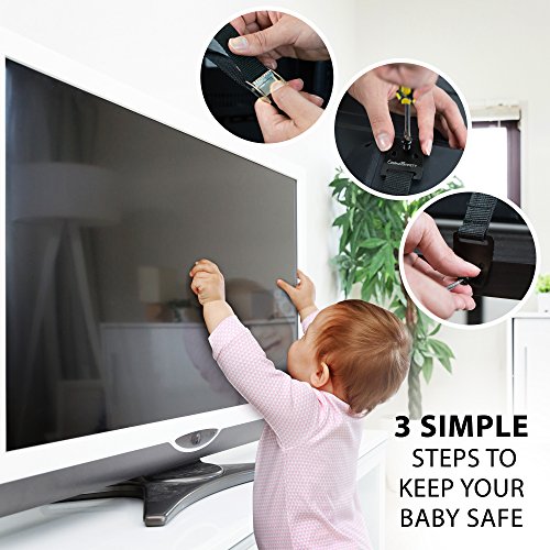 - EASY TO UNDO: The COSMOSAFETY ANTI-FALL-OVER STRAPS are detachable, so after the installation, you can detach the television, appliance, or furniture from the wall (while maintaining installation) to clean between it and the wall; with our set installed, elderly, parents, children, and toddlers do not have to worry about a large item tipping or falling by accident or due to an earthquake; it gives you peace of mind knowing your items are safely secured;
