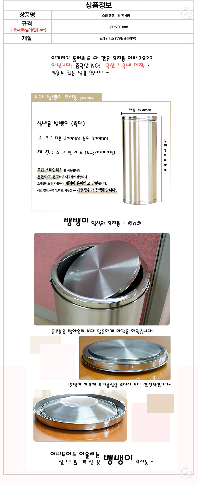 Circular Bangbang Type Recycle Bin 300X700 Waste Bin Stainless Steel