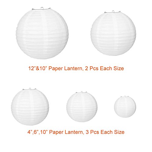 Paxcoo 13 Packs White Paper Lanterns with Assorted Sizes for Wedding Party Decorations