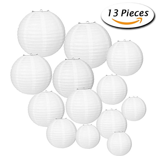 - WHAT YOU GET – PAXCOO white paper lantern including 13pcs round paper lanterns in different sizes. Each paper lantern has been pack individual with instruction makes you easy to assemble and hang