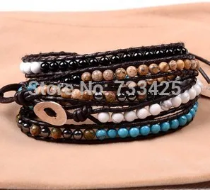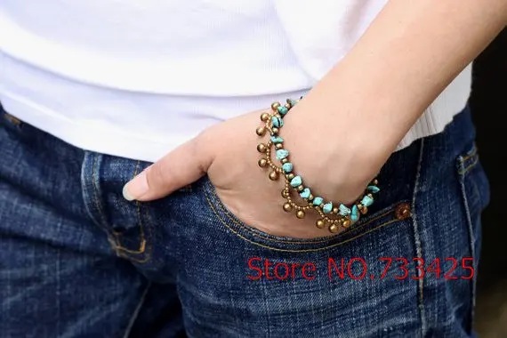 Material:brass beads+wax cord+natural stone