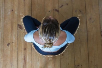 Step 2: Using a metric tape, measure the size from A to B (from one kneecap, around your back, to the other kneecap) as show in the picture.