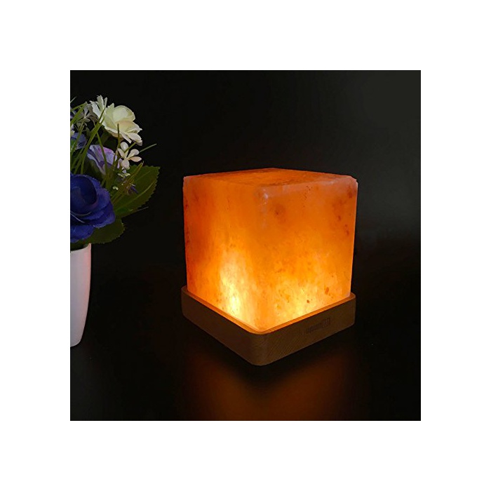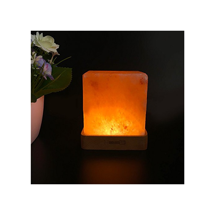 Homankit 암염 램프 큐브 공기 정화 수면 촉진 USB충전 목제 받침대 분리식 포터블 1년 메이커 보증