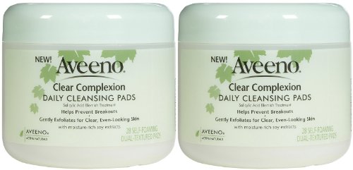 Antidote for Clear SkinRefresh your skin with Aveeno Clear Complexion Daily Cleansing Pads as these pre-moistened pads contain a blemish-fighting ingredient. These dual textured pads lift away dirt, oil and makeup and also gently exfoliate dry patches. These pads are designed to leave your skin clear, smooth and even-looking.