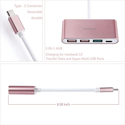 beegod USB-C 3.0 Type C Adapter Multiport Converter for New MacBook(2015/2016), ChromeBook Pixel Devices Nokia N1, Nexus 6/6p and Other Type-C HUB Devices,1 Charging Port and 3 USB A Ports