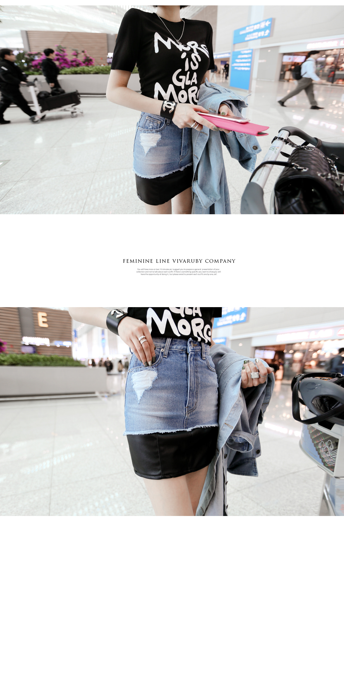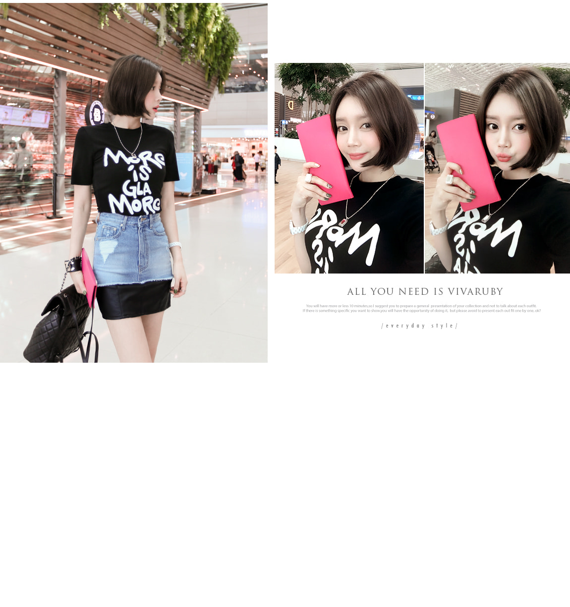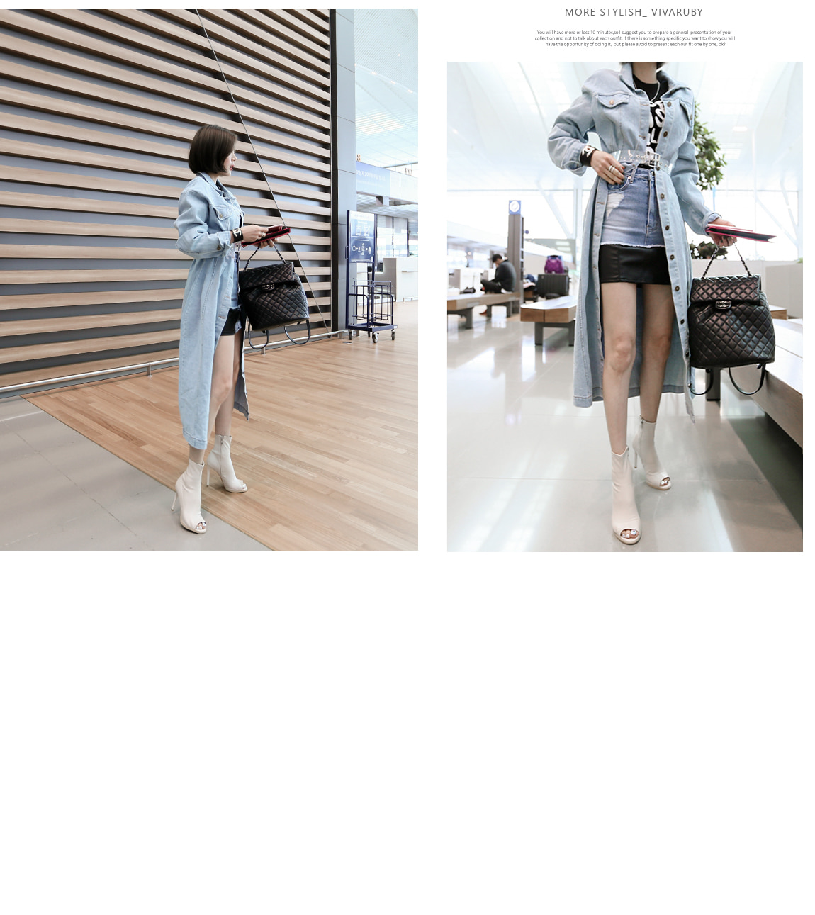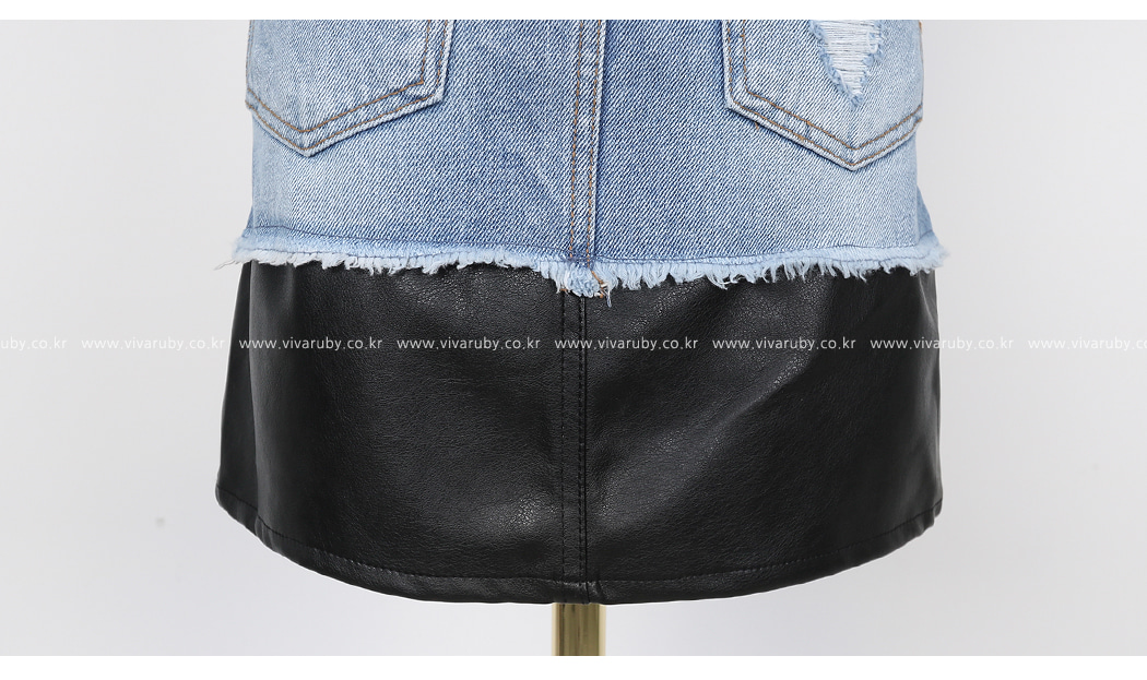 데님과 레더 소재감으로 스타일리쉬한 포인트를 주었어요