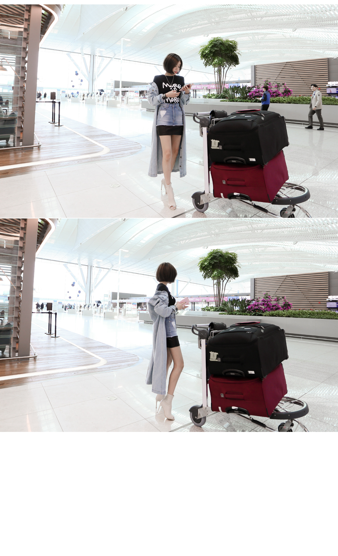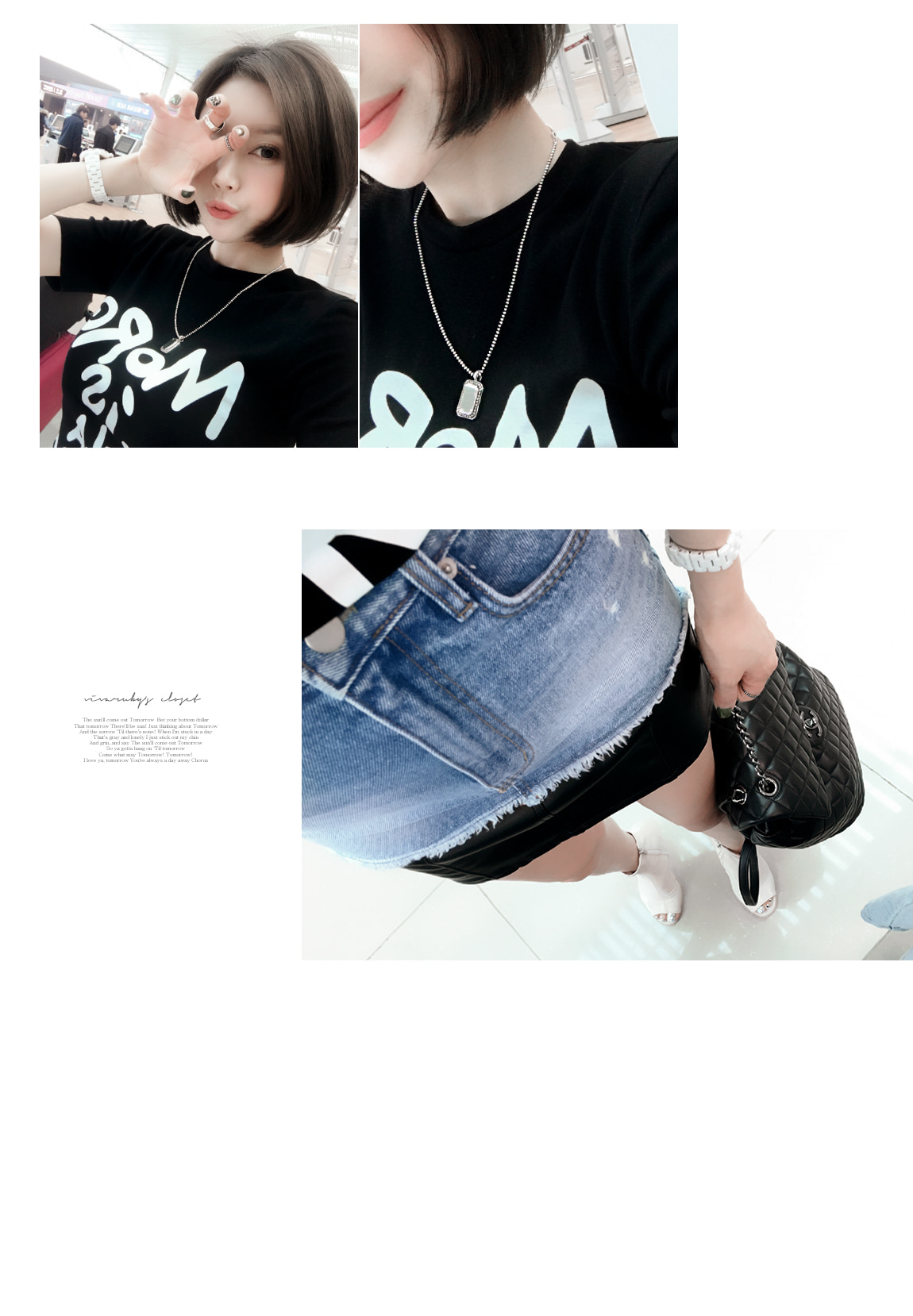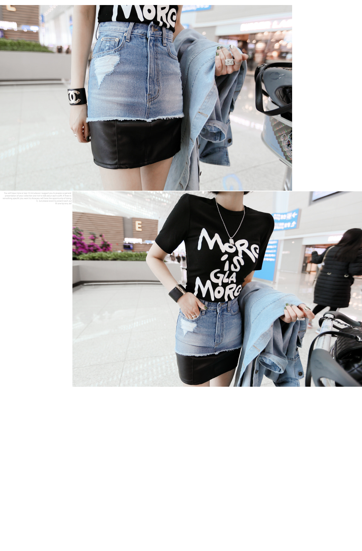 데님과 레더 소재감으로 스타일리쉬한 포인트를 주었어요