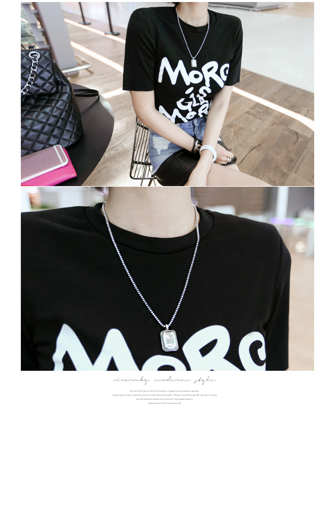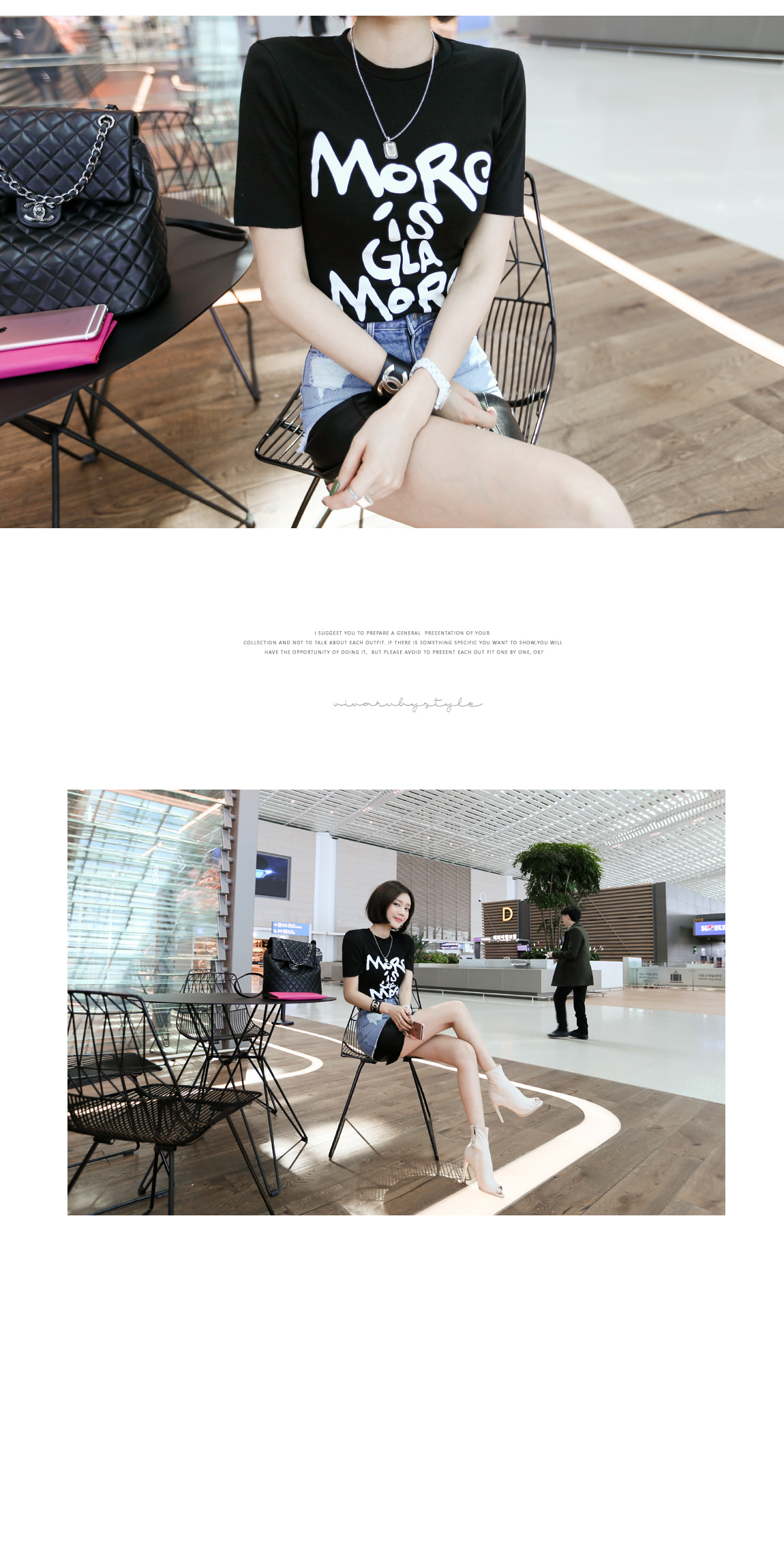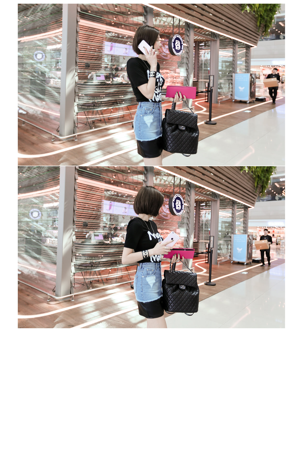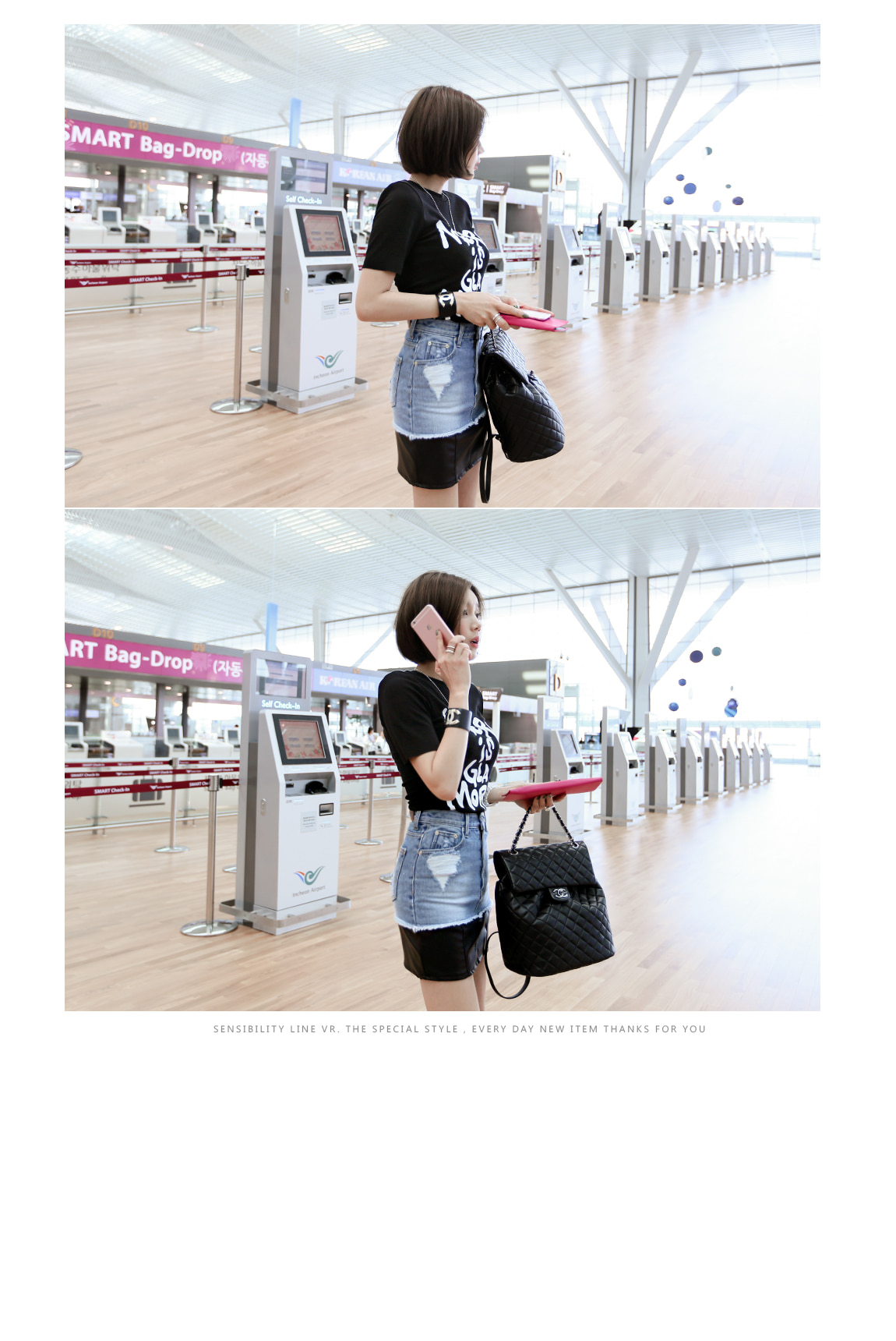 데님과 레더 소재감으로 스타일리쉬한 포인트를 주었어요