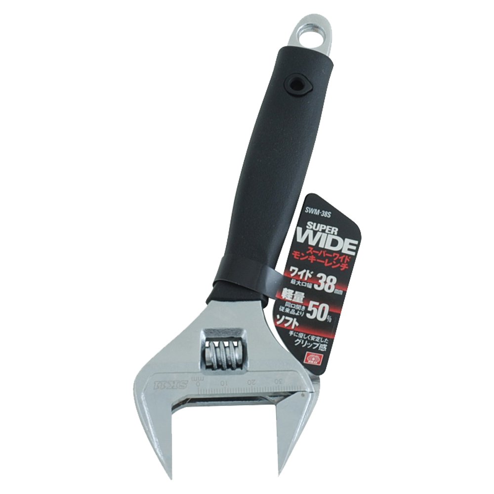 Super wide monchi wrench which can be tightened with bolts and nuts of multiple sizes