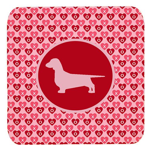 Caroline's Treasures SDK1024-A-FC Dachshund Valentine Hearts Foam Coasters (Set of 4), 3.5" H x 3.5" W, Multicolor