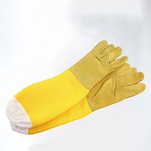 Chengsan Goatskin Extra Long Beekeeping Gloves Ventilated Sleeves white vent,Long Canvas Sleeve and Sting Proof with elastic cuff Elasticated Gauntlets(CS-YFST02-02)(large)