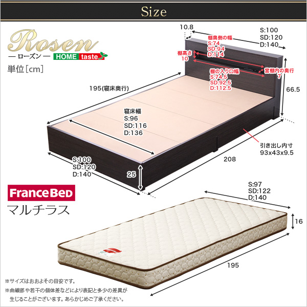 宮、照明付きチェストベッド【ローズン-ROSEN-(シングル)】(マルチラススーパースプリングマットレス付き)