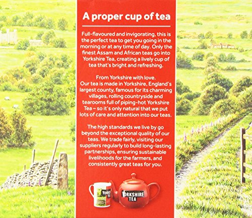 Blended in the Yorkshire dales. Rich, refreshing & full of flavour. We never dreamt that people all over the country would fall in love with Yorkshire tea. Our tea tasters sample hundreds of teas every week, just to find the few good enough for Yorkshire tea and we are happy to pay that little more for the pick of the crop. We also take the time and trouble to blend our tea so suit your water, whether it's hard or soft. And we believe that our traditional square tea bags are thee best because they allow the full flavour of the tea to develop.Feature