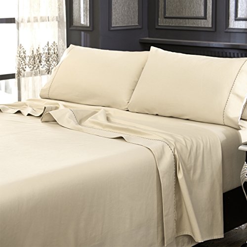 Faskelin 100% Combed Cotton Household Queen Sheets Set – 190 Gram Heavyweight 4 Pieces Bed Sheet Sets (Queen, Cream)